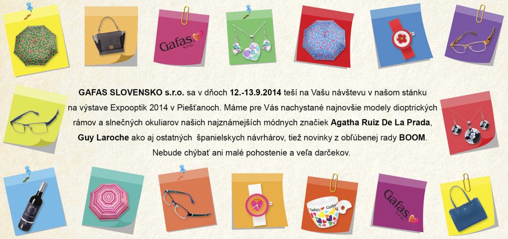 Dovolujeme si vás pozvat na tradiční výstavu Expooptik 2014, která probíhá ve dnech 12. - 13. září v Piešťanech. My na ní samozřejmě nebudeme chybět.